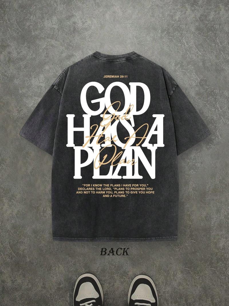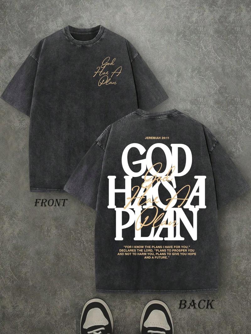 “God Has A Plan” Vintage Washed T-Shirt – 230g Cotton, Double-Sided Print